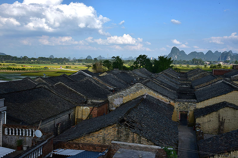 崇山古民居位于永?h城的東北部,距縣城約20公里。該村地處丘陵,地勢南高北低,神灣河流經(jīng)該村的東部,向北在漁船上屯附近匯入相思埭,境內長約6公里。蘇羅公路貫穿境內,交通十分便利。古民居共24戶120多人,全屯以優(yōu)質水稻、沙糖桔種植及外出務工為主要收入來源,年人均純收入1.4萬多元。
