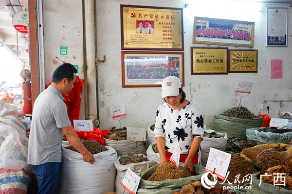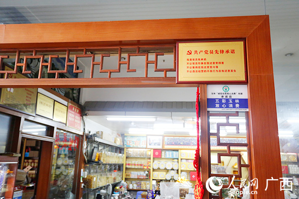 玉林銀豐國際中藥港里的黨員夫妻示范店。人民網(wǎng) 彭遠(yuǎn)賀攝