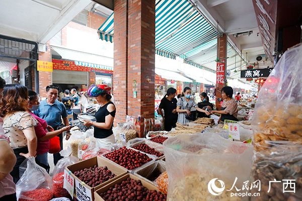 玉林銀豐國際中藥港里生意繁忙。人民網(wǎng) 彭遠(yuǎn)賀攝