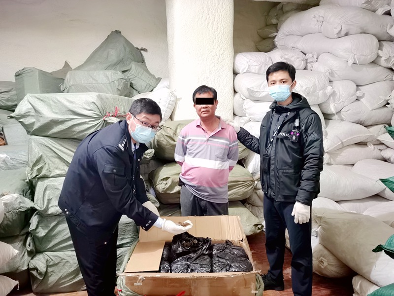 工作人員查獲涉案穿山甲鱗片。鐘華琳攝