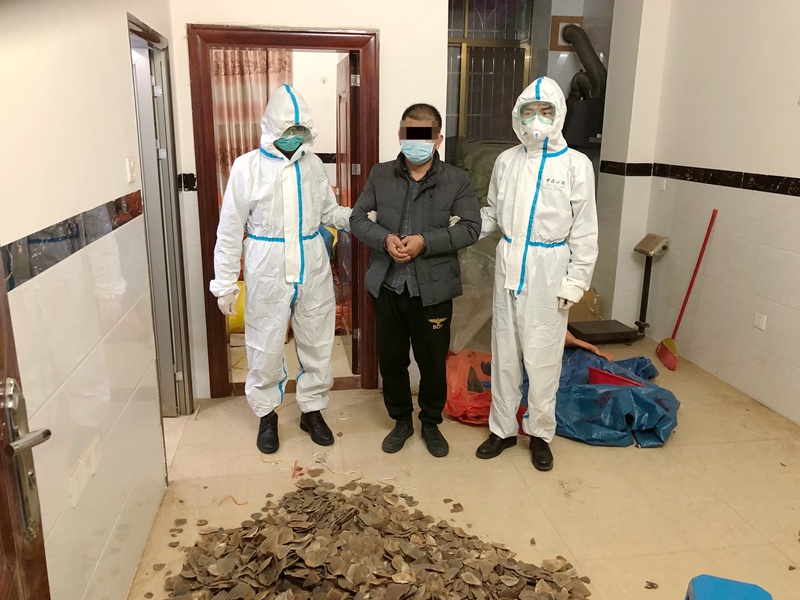 人民網(wǎng)玉林7月8日電 近日,廣西貴港海關(guān)緝私分局開展“守護(hù)者2021”打擊瀕危物種走私專項(xiàng)行動,在廣西玉林成功打掉瀕危物種走私團(tuán)伙1個,端掉瀕危物種囤積窩點(diǎn)2個,抓獲犯罪嫌疑人2名,現(xiàn)場查獲涉嫌走私的穿山甲鱗片2245.995千克、穿山甲爪子2.093千克。
