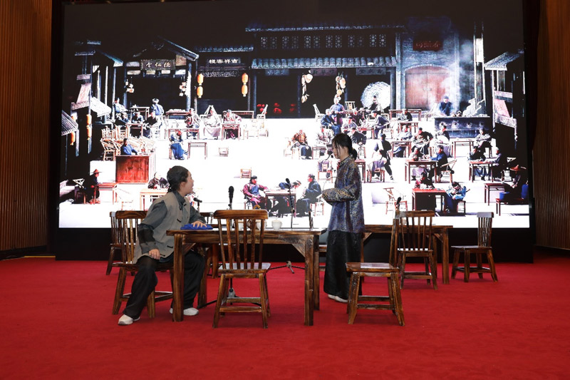 同學(xué)們表演舞臺(tái)劇《茶館》。沈博攝