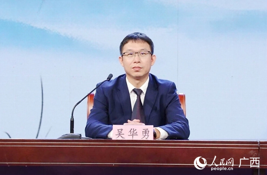 覃塘區(qū)委副書記、代理區(qū)長吳華勇作招商引資推介。人民網(wǎng) 王勇攝