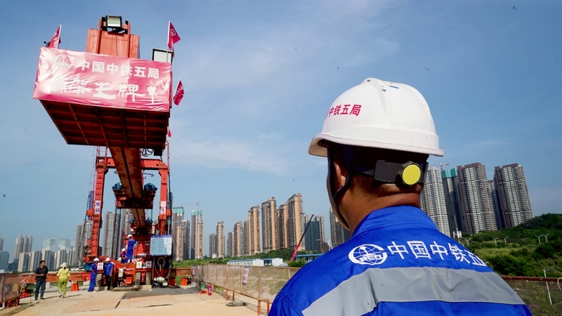 人民網(wǎng)南寧7月20日電 7月20日9時18分,在貴南高鐵客車下行聯(lián)絡(luò)線鳳嶺特大橋施工現(xiàn)場,隨著架梁作業(yè)人員操縱架橋機將一片重達142噸、長32m的預(yù)應(yīng)力簡支T梁緩緩送達指定位置,標志著貴南高鐵引入南寧樞紐工程首片T梁架設(shè)成功,該工程也正式由線下施工轉(zhuǎn)入線上鋪架施工階段,為貴南高鐵盡早開通奠定堅實基礎(chǔ)。