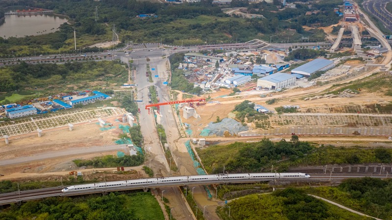 貴南高鐵引入南寧樞紐首片梁架梁現(xiàn)場。歐陽開源攝