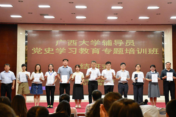 至此,本期廣西大學(xué)輔導(dǎo)員黨史學(xué)習(xí)教育專(zhuān)題培訓(xùn)班圓滿(mǎn)完成。作為廣西大學(xué)黨史學(xué)習(xí)教育的重要舉措之一,本次培訓(xùn)以理論培訓(xùn)、專(zhuān)題研討、現(xiàn)場(chǎng)教學(xué)、小組討論等方式對(duì)該校輔導(dǎo)員進(jìn)行了全面、系統(tǒng)的培訓(xùn),對(duì)于進(jìn)一步開(kāi)展黨史學(xué)習(xí)教育,做好學(xué)生思想政治教育工作,開(kāi)創(chuàng)學(xué)生工作新局面具有重要意義。(孫曉黎 雷圓媛)