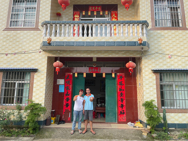 梁永剛與妻子在新房門前合影。防城區(qū)融媒體中心供圖