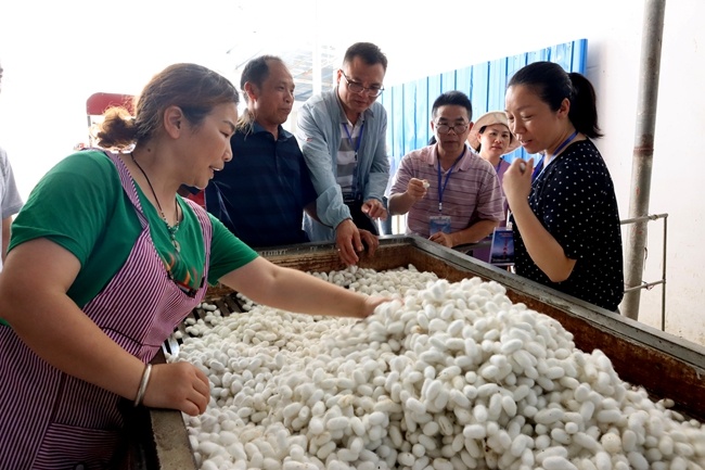 凌云縣加尤鎮(zhèn)么賢村群眾在銷售蠶繭。肖發(fā)凌攝