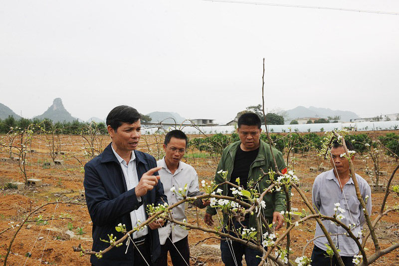 潘慶標(biāo)(左)給村民講解桂花梨種植技術(shù)。武鳴區(qū)融媒體中心供圖