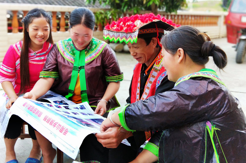 “民族團(tuán)結(jié)心向黨,感恩奮進(jìn)奔小康!睆V西環(huán)江毛南族自治縣陳雙村的這副對(duì)聯(lián)給出了很好的答案。