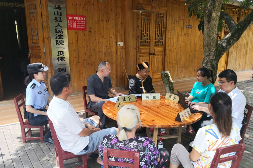 馬山縣法院與“貝儂”一同開(kāi)展調(diào)解工作。李睿攝