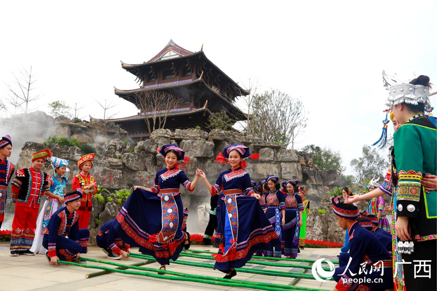 “壯族三月三”跳竹竿舞活動(dòng)。人民網(wǎng) 彭遠(yuǎn)賀攝
