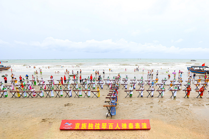 京族獨(dú)弦琴百人彈奏表演。黃天福攝