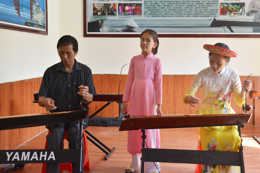 上世紀(jì)90年代,精通獨(dú)弦琴的老一輩藝術(shù)家大多已過(guò)世,能夠彈奏獨(dú)弦琴的人屈指可數(shù)。為了挽救瀕臨失傳的京族獨(dú)弦琴藝術(shù),蘇春發(fā)決意棄商從教,培養(yǎng)新苗子。