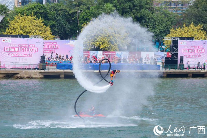 人民網(wǎng)柳州9月30日電 (吳明江)9月30日上午11時(shí),2021中國柳州國際水上狂歡節(jié)暨水上休閑運(yùn)動(dòng)會(huì)開幕式在金沙角水域及親水平臺(tái)舉行。