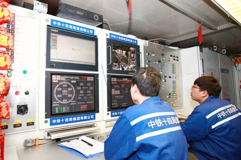 中鐵十四局施工技術(shù)人員正在操縱盾構(gòu)機(jī)進(jìn)行施工。趙耀榮攝