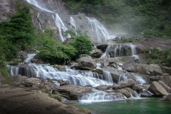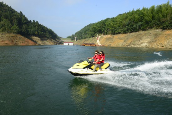 寶鼎瀑布發(fā)源于華南第二高峰真寶鼎。它象一條銀色巨龍穿云破霧,從天而降,其宏偉氣勢,可謂“飛流直下三千尺,疑是銀河落九天”。瀑布水流量大,落差近700米。從瀑頂?shù)狡俚,幾?jīng)周折,形成九級直落寶鼎湖。明代旅行家徐霞客贊之曰:“懸崖飛瀑,長如布、轉(zhuǎn)如傾、勻成簾”。寶鼎瀑布?xì)鈩莅蹴、造型?yōu)美、瀑色絢麗、瀑聲音韻別致。寶鼎湖面積為705畝,最深50米,平均深度35米,猶如一面大明鏡鑲嵌在群山之中,泛舟其上,湖光山色,盡入眼簾,令人心曠神怡,流連忘返。目前景區(qū)推出世紀(jì)之環(huán)(360自行車)、空中自行車、摩托艇等項(xiàng)目。
