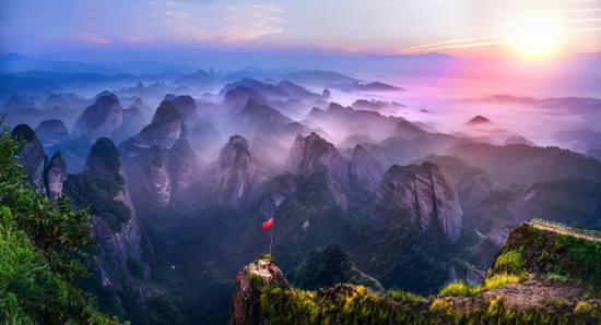 桂林丹霞·八角寨,世界自然遺產,國家森林公園,國家地質公園,國家4A級景區(qū),被《中國國家地理》雜志評選為“中國最美七大丹霞”之一。分布40多平方公里,主峰海拔818米,因主峰有八個犄角而得名,是嶺南地區(qū)夏季避暑、冬季賞雪的絕佳勝地。