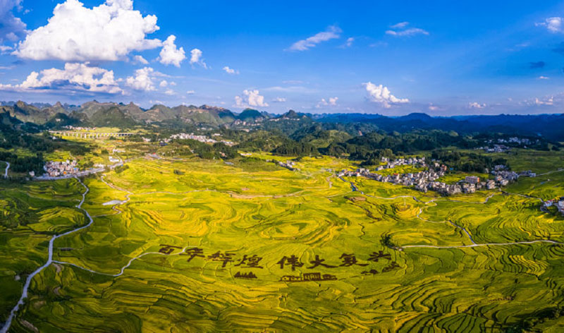 南丹縣巴平村的稻田畫。南丹縣委宣傳部供圖