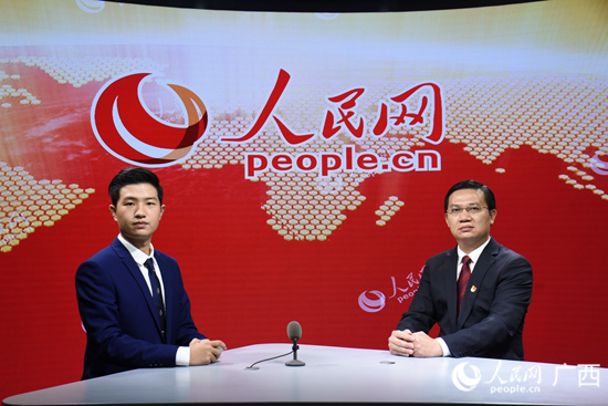 賀州市八步區(qū)委常委、宣傳部部長(zhǎng)覃遠(yuǎn)軍接受人民網(wǎng)專訪。人民網(wǎng) 王功孝攝