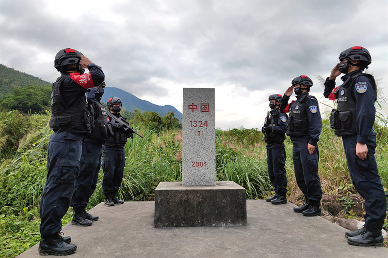 何亮與戰(zhàn)友向界碑敬禮。李賦嘉攝