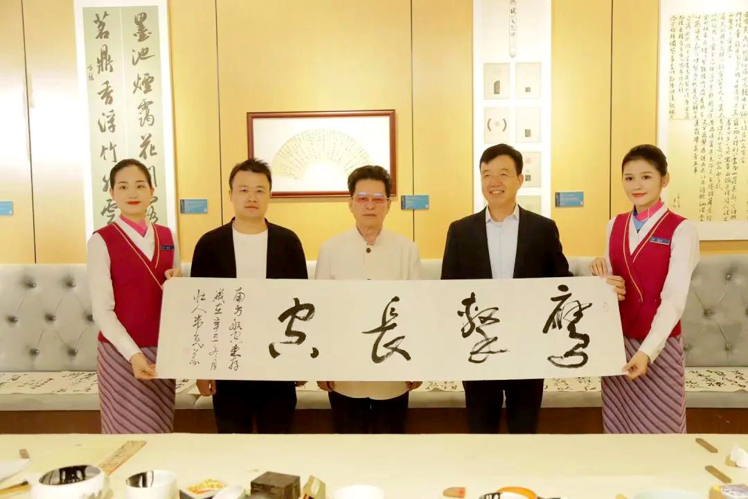 著名書法家韋克義(中)給南航廣西分公司贈(zèng)送作品。主辦方供圖