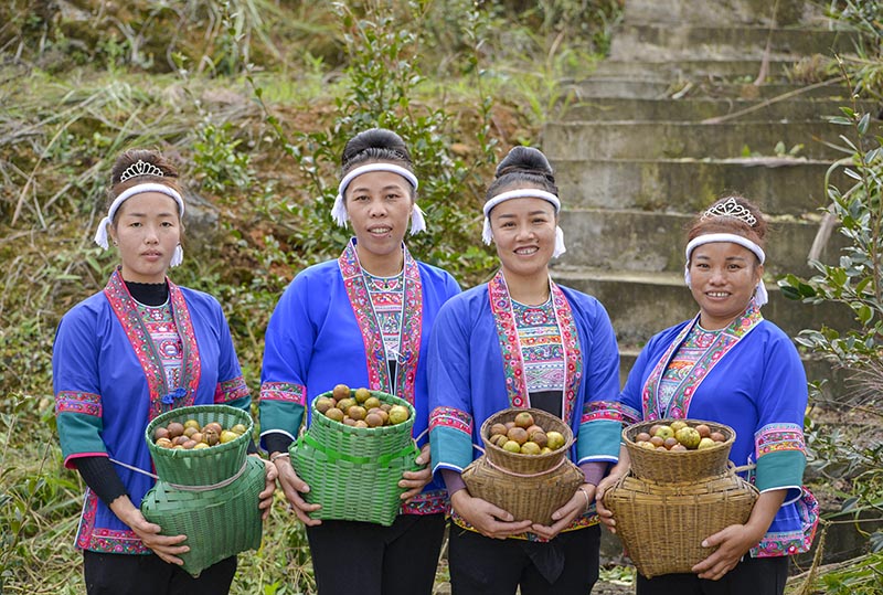 村民們正在裝運(yùn)油茶果。滾億忠攝