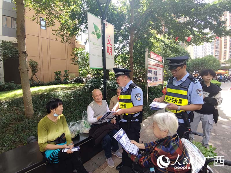 民警走進(jìn)社區(qū)進(jìn)行防詐騙宣傳。人民網(wǎng) 王勇攝