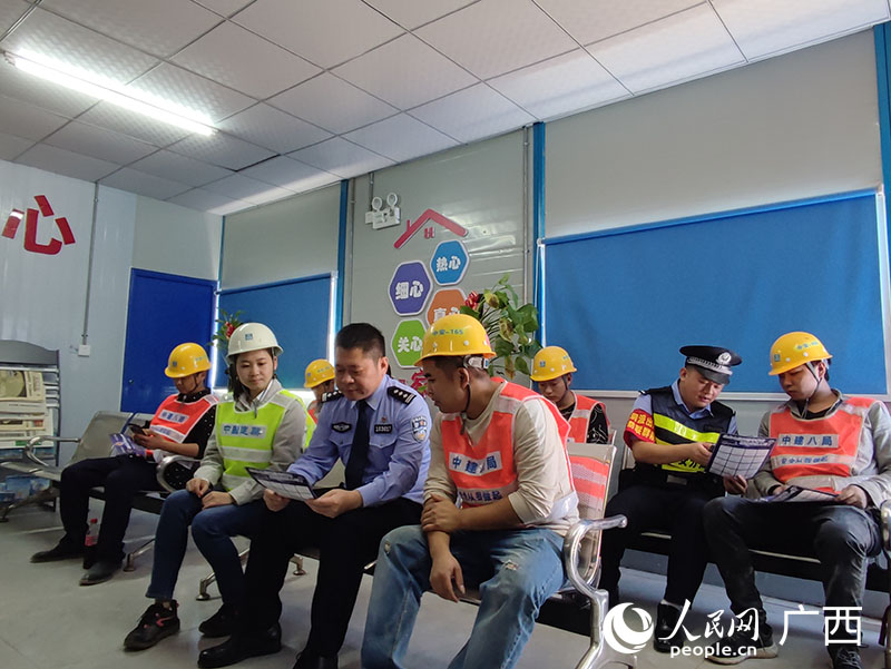 民警走進(jìn)工地進(jìn)行安全宣傳。人民網(wǎng) 王勇攝