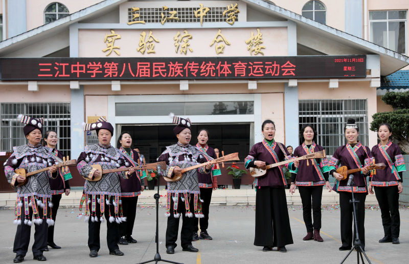 人民網(wǎng)三江11月11日電 近日,廣西三江侗族自治縣三江中學(xué)舉辦為期兩天的第八屆民族傳統(tǒng)體育運(yùn)動(dòng)會(huì),全校師生以侗族琵琶歌、竹竿舞、背簍繡球等豐富多彩的民族體育競(jìng)技項(xiàng)目,盡展侗鄉(xiāng)學(xué)子青春活力,進(jìn)一步傳承和發(fā)揚(yáng)民族傳統(tǒng)文化。(龔普康、梁秀明、吳明江)