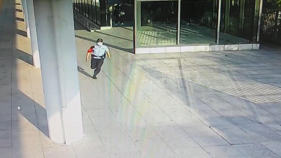 民警飛奔前往現(xiàn)場(chǎng)。監(jiān)控截圖