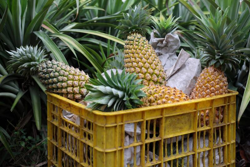 果農(nóng)們正在田間采收鳳梨。李婕玉攝