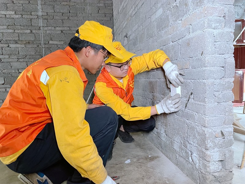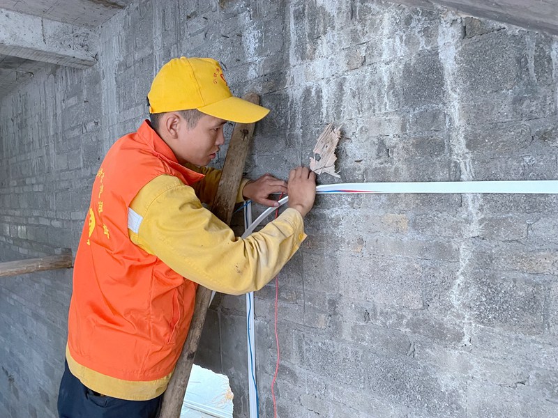 志愿者正在根據(jù)戶主需要,將插座安在最合適的位置。田昌友攝