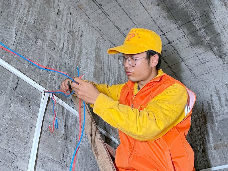 志愿者將電線放入線槽內(nèi)。田昌友攝