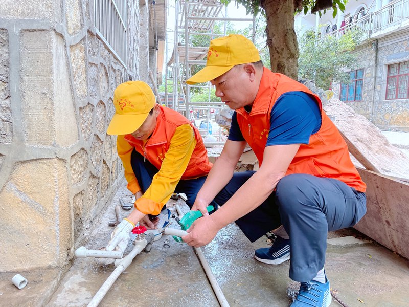 興義供電車間黨支部書記羅毅作為活動(dòng)領(lǐng)隊(duì),將志愿者分為管道維修組、電路維修組、用水安全宣傳組,管道維修組和電路維修組在李汶水家作業(yè),用水安全宣傳組走訪全村,為村民發(fā)放用水用電安全宣傳小冊(cè)子。