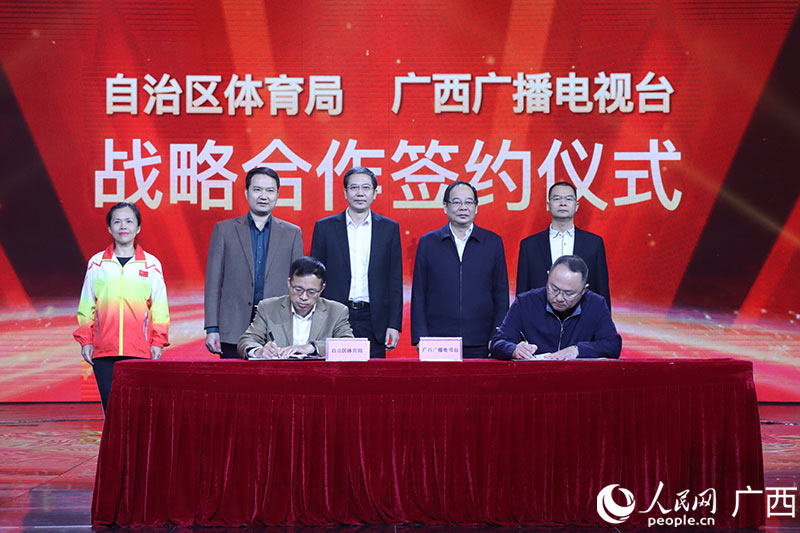 啟動(dòng)儀式上,廣西體育局和廣西廣播電視臺(tái)新聞?lì)l道簽署戰(zhàn)略合作協(xié)議,助力雙方合作全面升級(jí),隨后,一幅以廣西特色的花山巖畫為元素靈感,運(yùn)用拓印版畫為創(chuàng)作手法,描繪一系列體育運(yùn)動(dòng)場(chǎng)景的十米畫卷緩緩鋪開,現(xiàn)場(chǎng)嘉賓與孩子們一同手持畫筆共繪學(xué)青夢(mèng)想,標(biāo)志著系列預(yù)熱活動(dòng)正式啟動(dòng)。