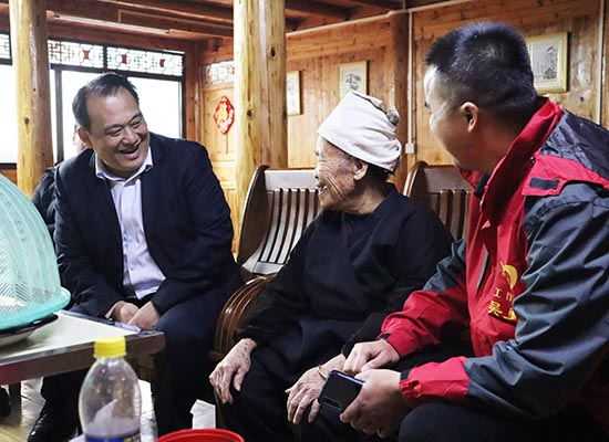 柳州市煙草專賣局主要負(fù)責(zé)人了解幫扶對(duì)象的生活改善情況。王桂林?jǐn)z