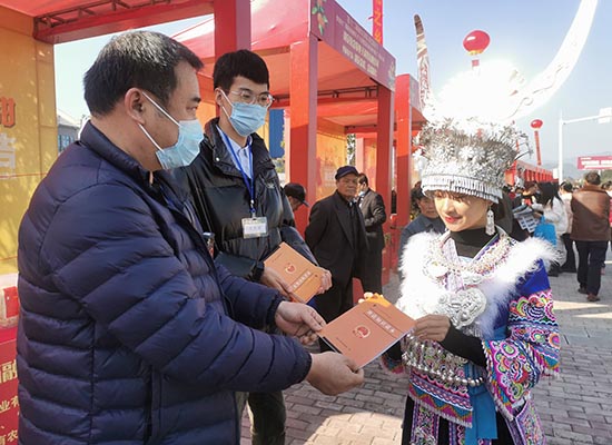 融安縣煙草專賣局工作人員向少數民族群眾發(fā)放宣傳資料。楊遠鵬攝