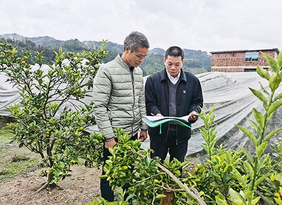 融安縣煙草專賣局工作人員深入零售客戶的果園里進行普法宣傳。楊遠鵬攝