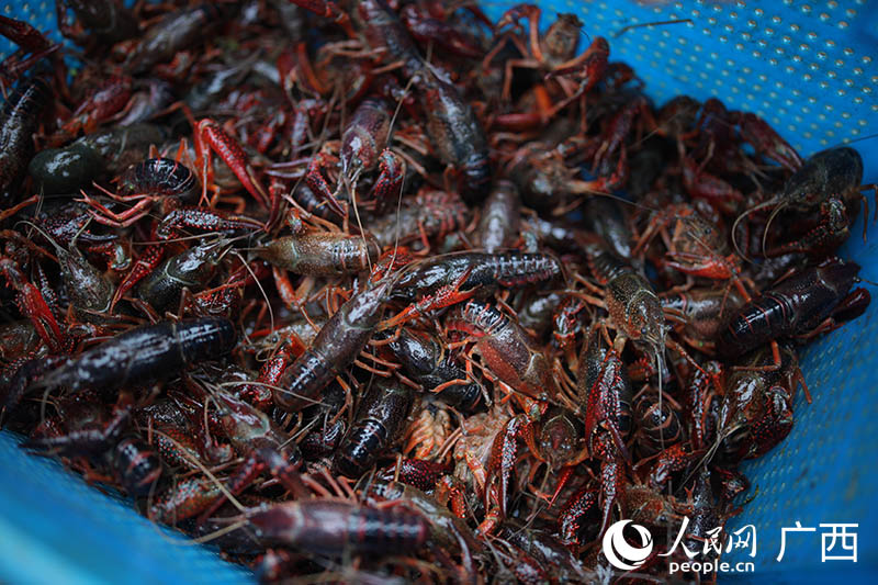 捕撈上來的小龍蝦。人民網(wǎng) 吳明江攝