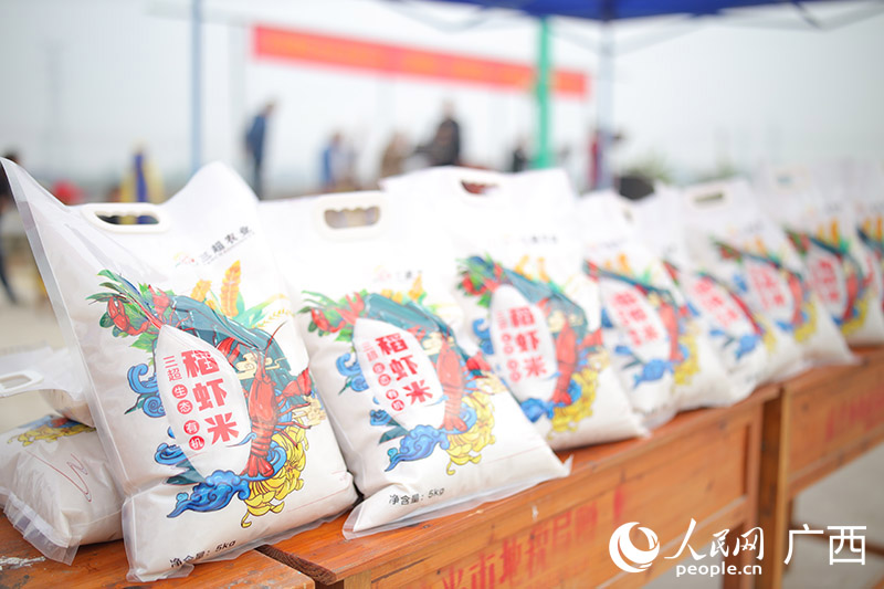 采用稻蝦養(yǎng)殖收獲的大米。人民網(wǎng) 吳明江攝