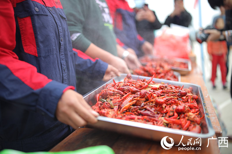 游客體驗現(xiàn)場煮小龍蝦。人民網(wǎng) 吳明江攝