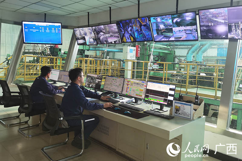 柳鋼冷軋廠集中操控室。人民網(wǎng) 覃心攝