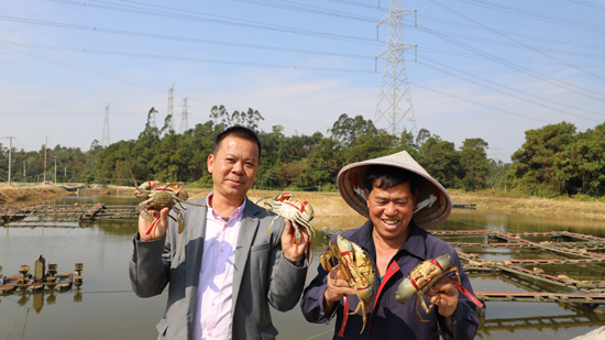 青蟹養(yǎng)殖戶展示青蟹成品。李林霞攝