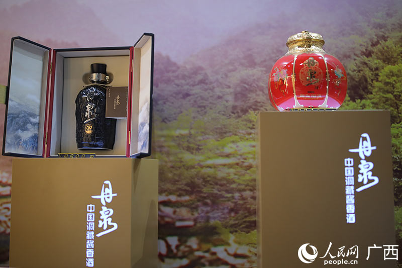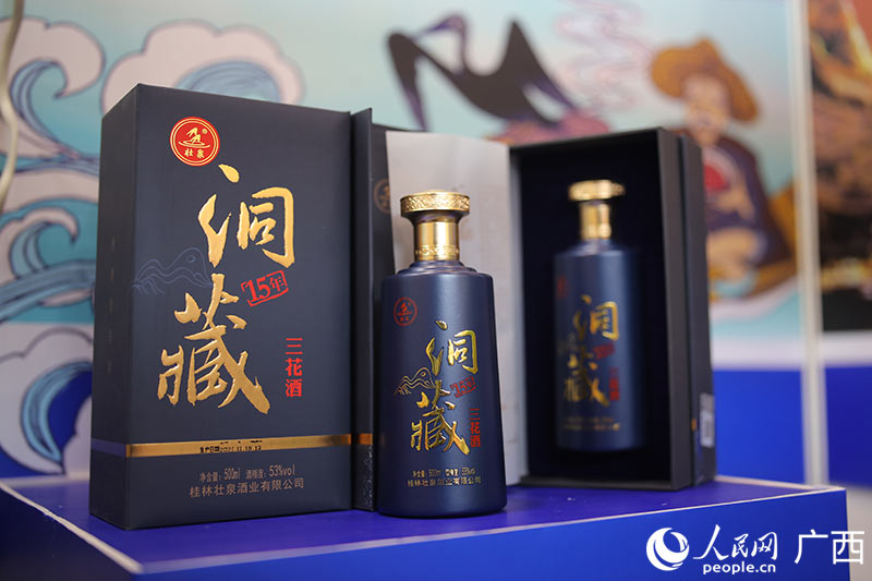 參展的洞藏三花酒產品。人民網 吳明江攝