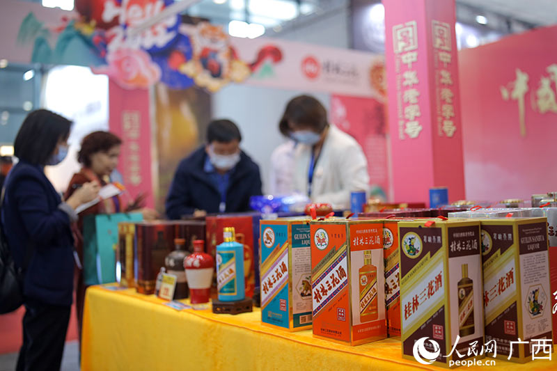 作為中華老字號的桂林三花酒引來客商駐足。人民網 吳明江攝