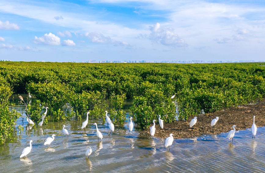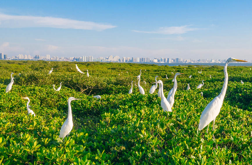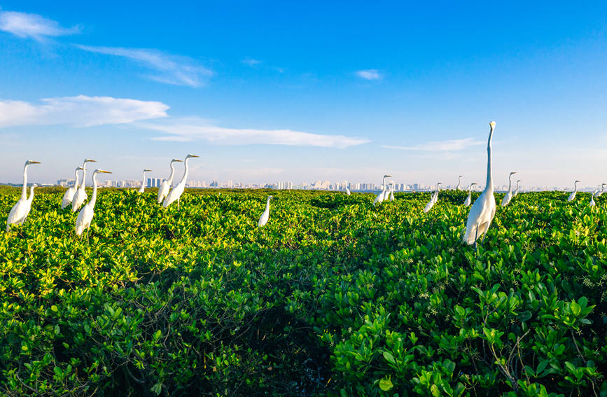 白鷺在紅樹林濕地里棲息。毛家平攝