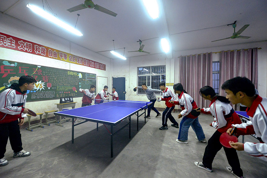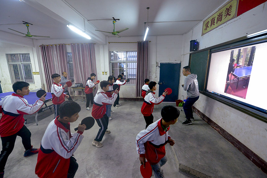 人民網(wǎng)三江1月14日電 發(fā)球、接球、削球......訓(xùn)練室里,孩子們往來穿梭,每一個動作都要重復(fù)好幾次。日前,在廣西三江侗族自治縣富祿苗族鄉(xiāng)初級中學(xué),來自國家移民管理局上海邊檢總站的支教民警張閱正在指導(dǎo)孩子們練習(xí)乒乓球技術(shù)。