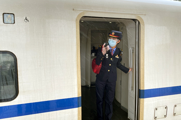 9時(shí)許,她是班組中第一個(gè)來到車隊(duì)的,編制趟計(jì)劃、請(qǐng)領(lǐng)服務(wù)備品、組織乘務(wù)人員測(cè)溫和列隊(duì)點(diǎn)名,檢查儀容儀表、著裝,布置趟重點(diǎn)工作等,為了保障旅客出行平安、有序、溫馨,讓旅客乘車體驗(yàn)更美好,她事無巨細(xì)。