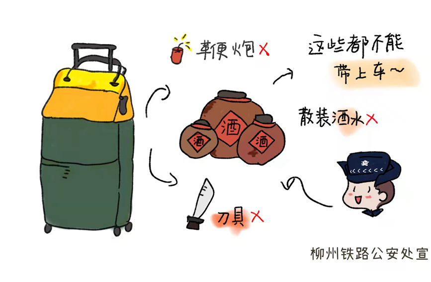 春運(yùn)期間,來(lái)往火車(chē)站乘車(chē)的旅客增多,旅客攜帶違禁品的情況時(shí)有發(fā)生。鄧璇將常見(jiàn)的一些乘車(chē)常識(shí)繪制成漫畫(huà)進(jìn)行宣傳,就是希望旅客群眾能提高安全乘車(chē)常識(shí),認(rèn)真遵守相關(guān)規(guī)定,平平安安乘車(chē)回家過(guò)年。(陳燕、韋生輝)